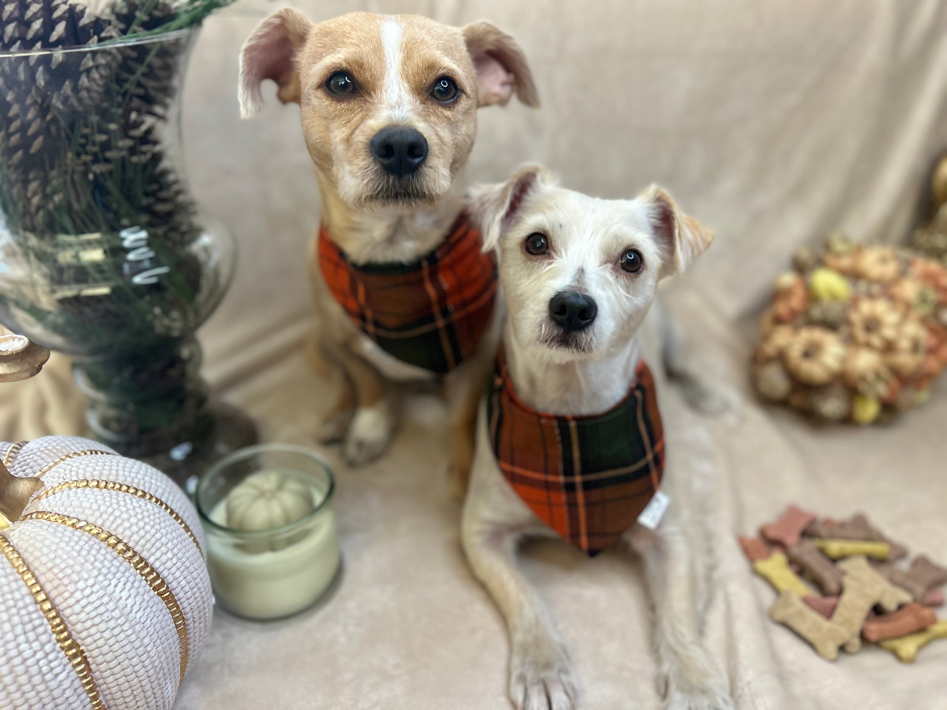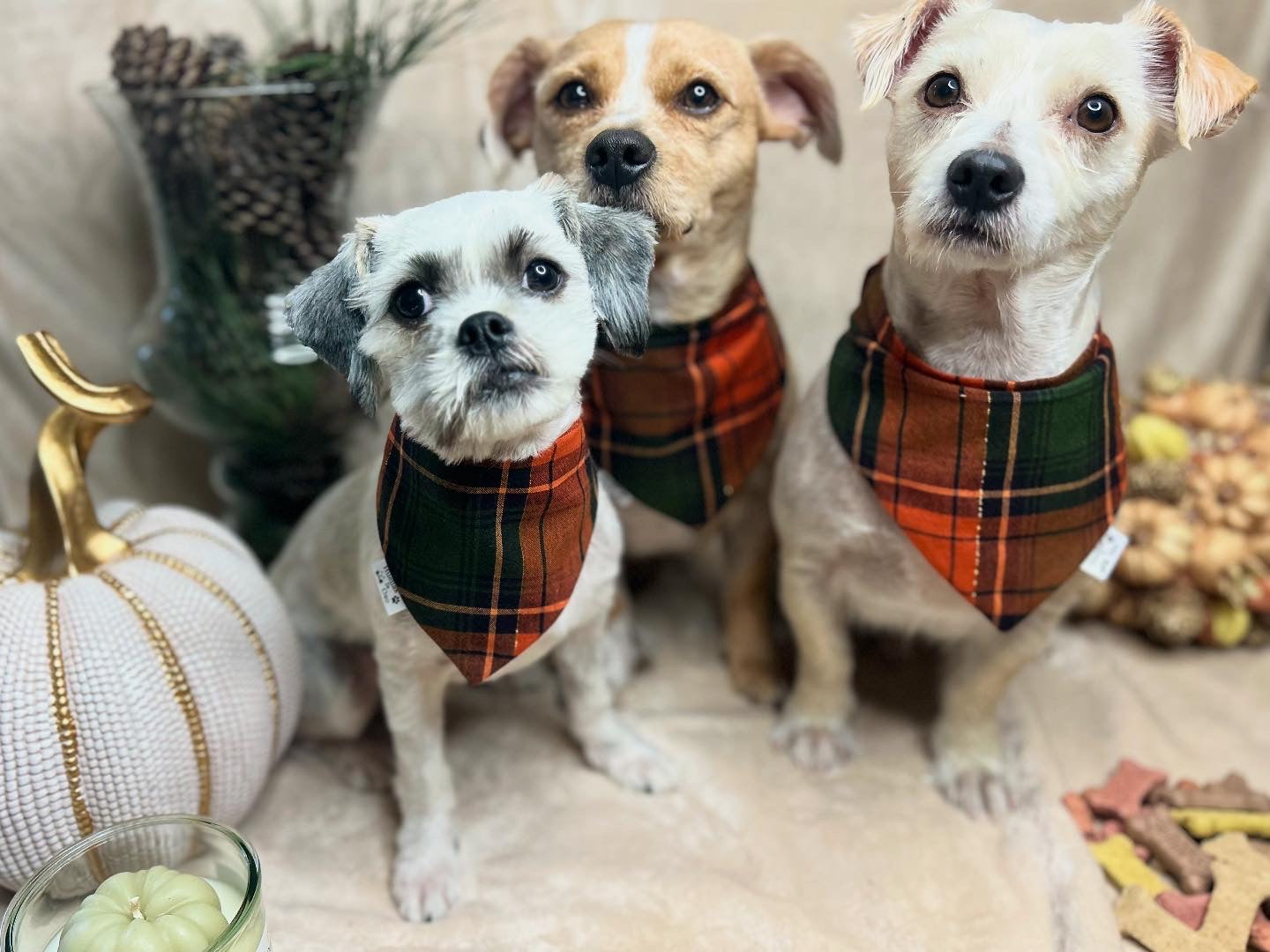 Meet Oso,Max, and Charlie, this 3 are the inspirations behind The Pawfect Dog Collection! These three take on many roles around here, but their favorite thing to do is head to the park and make new friends. They love meeting everyone they see, and people always tell them how adorable they look in their scrunchie bandanas! That’s why they’re so excited to share their favorite styles with your pup so your dog can look just as cute and charming as they do!